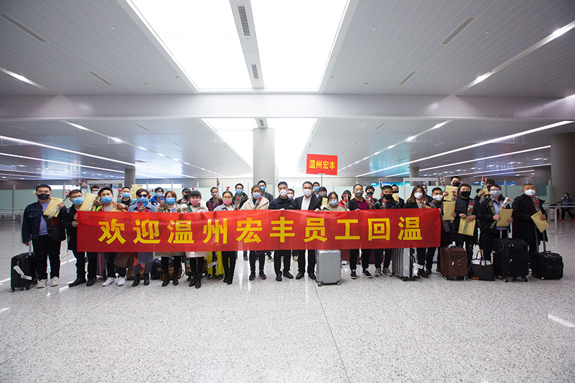 “政企協(xié)力復(fù)工復(fù)產(chǎn),溫州宏豐包機(jī)票接回返崗員工”2月26日,百余名來自重慶、貴州、陜西等地返崗員工順利抵達(dá)溫州龍灣國際機(jī)場,政府、公司領(lǐng)導(dǎo)到機(jī)場,歡迎返崗員工。
